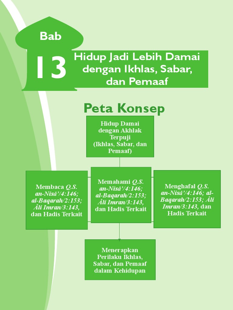 Pendidikan agama islam kelas VII: hidup jadi lebih damai dengan ikhlas, sabar dan pemaaf. Hadist ini diriwayatkan oleh Tirmidzi dan Ibnu Majah. Hadist tentang sabar, Nabi Muhammad SAW. bersabda, "Jika kesabaran itu adalah seorang laki-laki, maka sungguh ia adalah laki-laki yang mulia." dan selengkapnya dalam artikel ini.